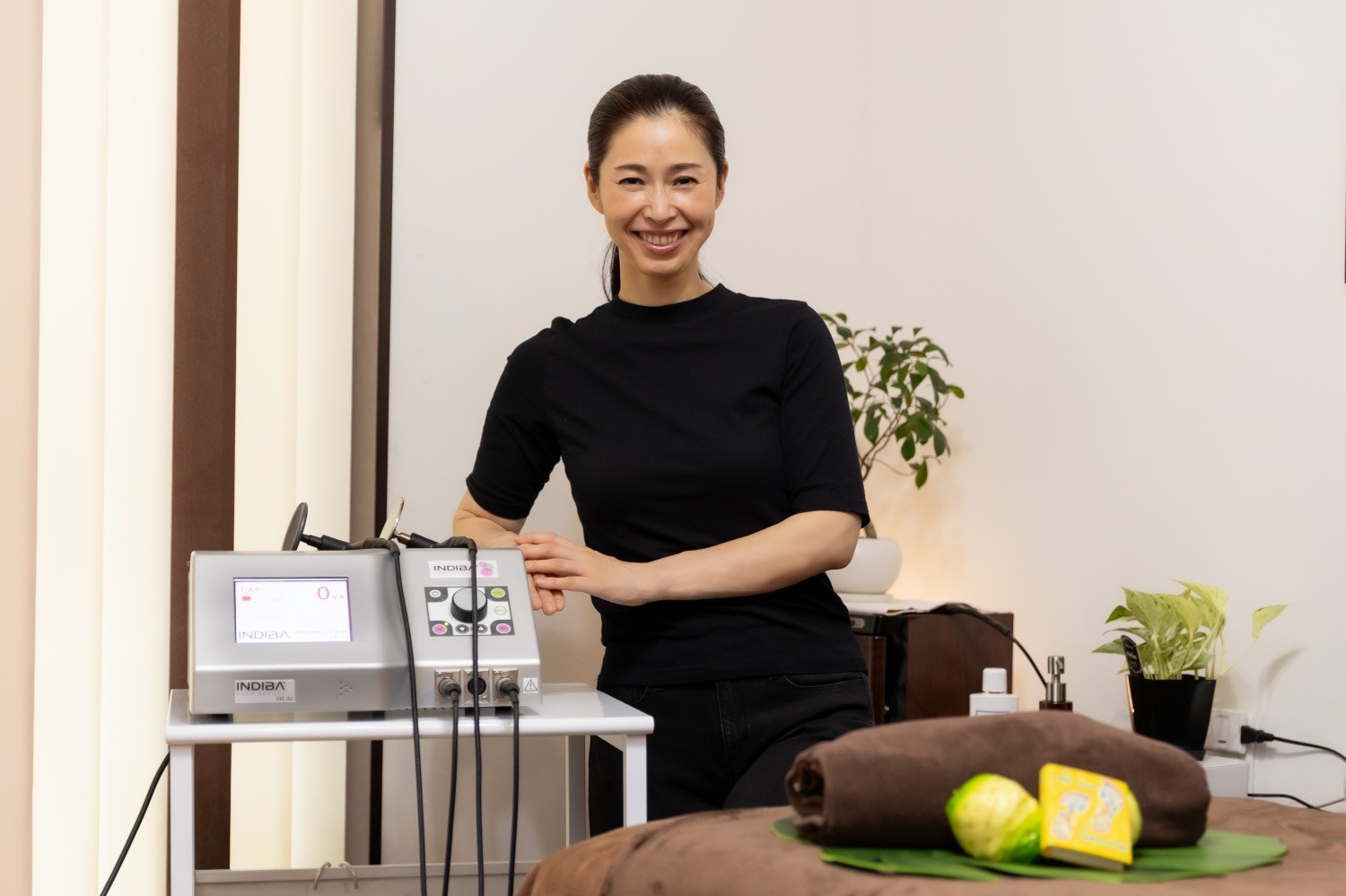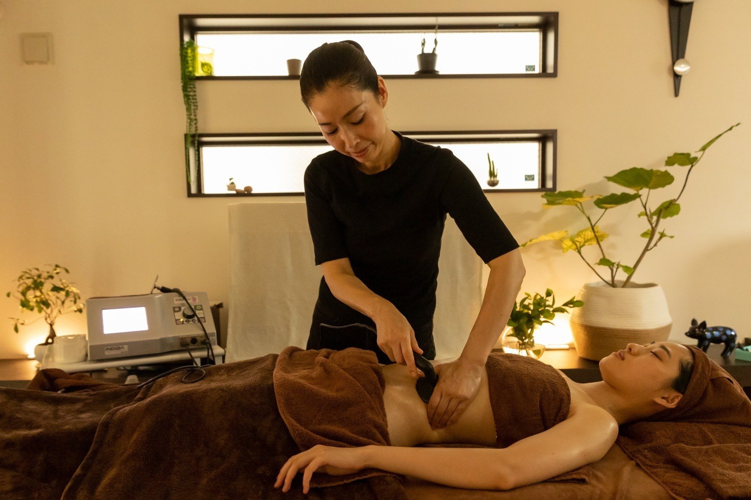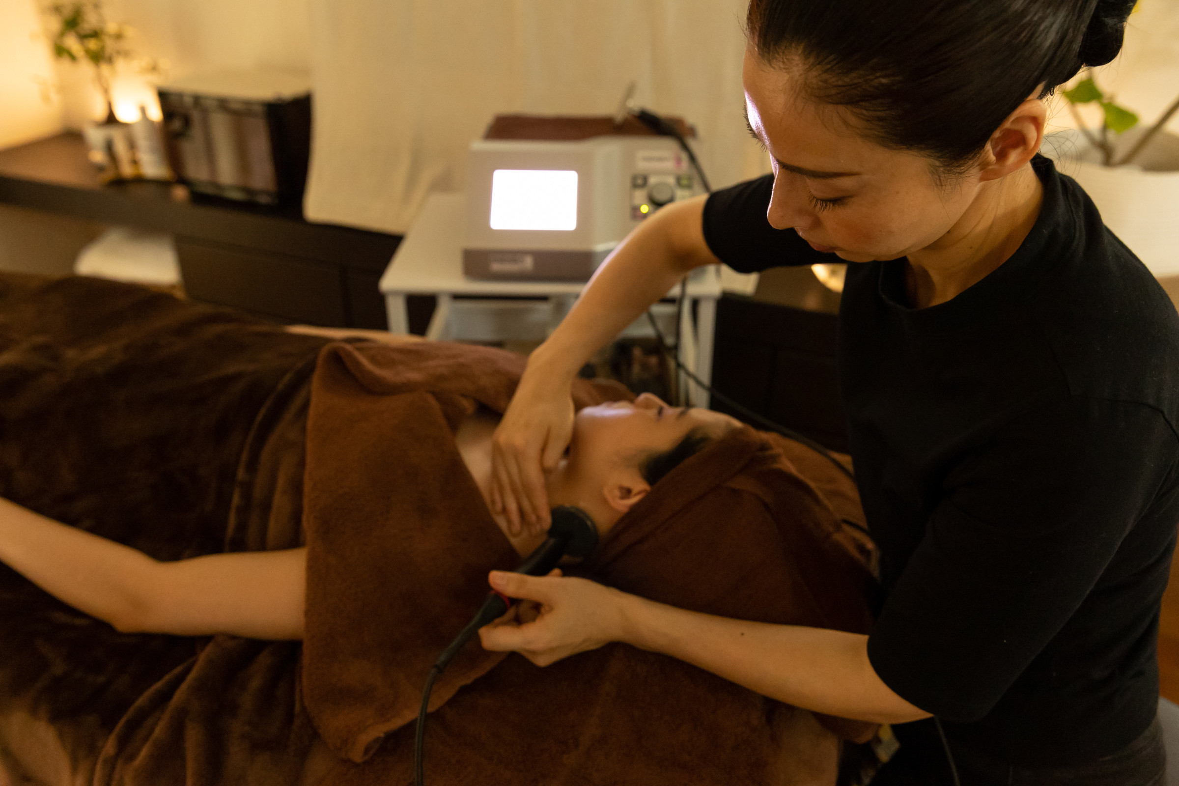 インディバをあてながら整体リンパを行います。